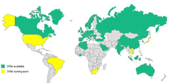 EBICS has evolved from a purely German communication channel to a truly global channel like SwiftNet or host-to-host connections. The new Global EBICS service is available in most BNP Paribas countries world-wide, with the countries marked in yellow to be added in the near future: