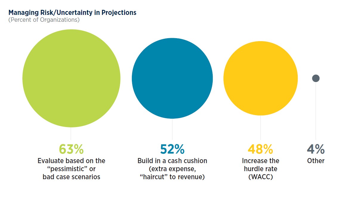 According to the AFP Cost of Capital Survey Report, 48% of organizations increase their hurdle rate (WACC) as a direct response to uncertainty, while 63% rely on pessimistic or worst-case scenario analysis when evaluating projects. This highlights a clear trend: cost of capital is being used not just to evaluate investments, but to absorb and reflect uncertainty.