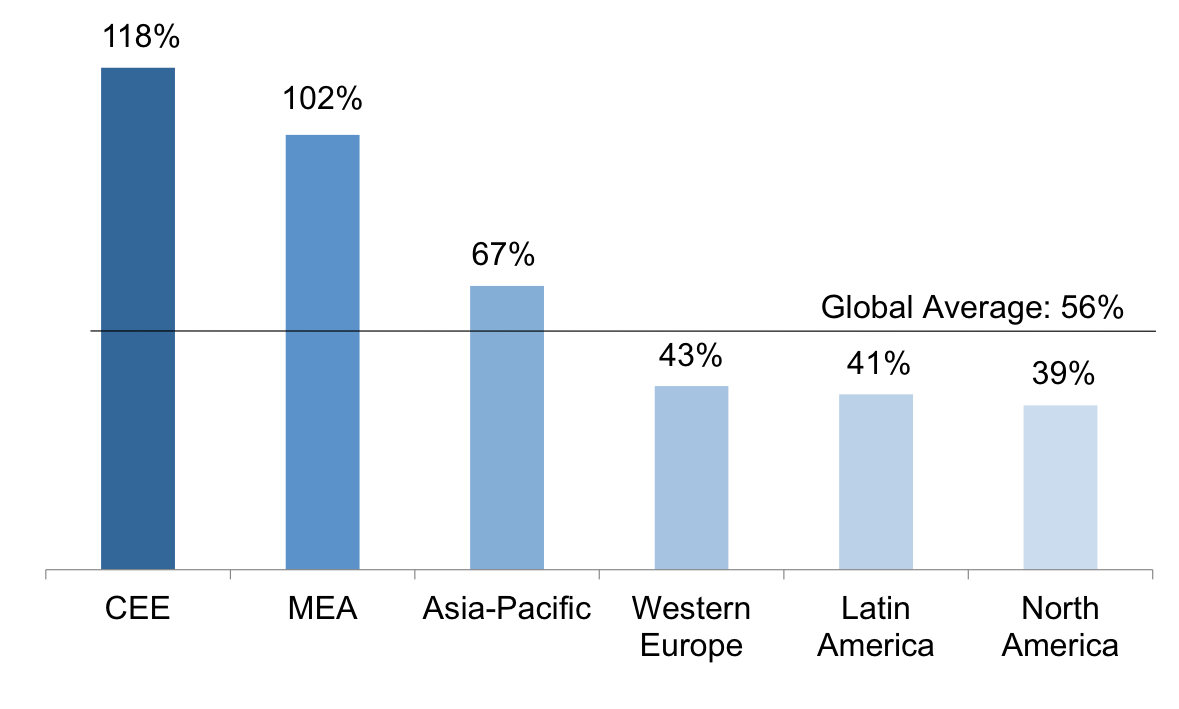 - In both the Middle East and Africa (MEA) and central and eastern Europe (CEE), RBR projects the total number of card payments to more than double between 2016 and 2022.
