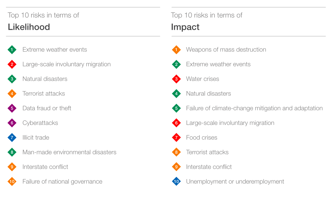 Last year the World Economic Forum's Global Risks Report 2016 named the top five most impactful risks as: