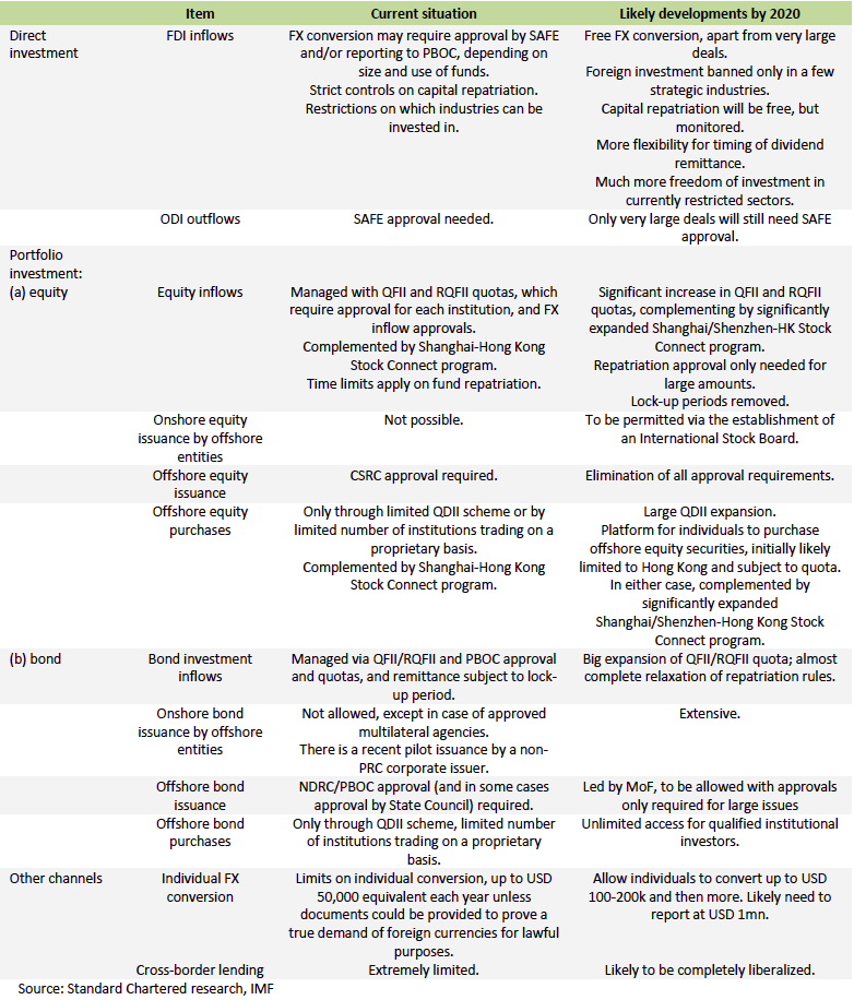 The white paper then goes on to describe the Infrastructure in place, and what they think is coming next including an important table on how they think China’s capital account will open up between now and 2020: