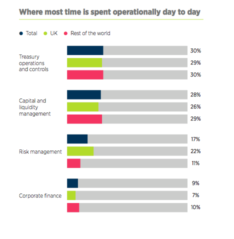 - Risk management is a key growth area, with 51 per cent of UK corporate treasurers expecting to spend more time on this activity over the next 12 months.