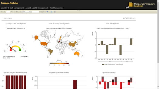 PwC and BELLIN have combined their resources to provide a company-specific reporting platform using BELLIN's tm5 web-based treasury system to provide integrated reporting of the basic treasury and business transaction data, the treasury analytics and treasury Key Performance Indicators (KPIs).